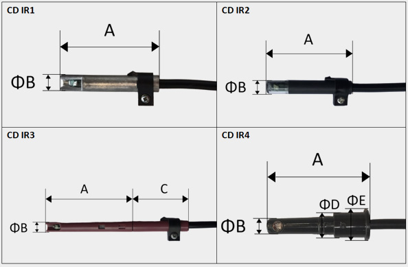 | 外壳材质 | 铝外壳, 无罩(适用于高温炉) | 黑色外壳,带防护罩 | 红色外壳,无罩,长度更长 | 黑色外壳,无罩 |